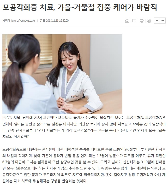 모공각화증 치료, 가을-겨울철 집중 케어가 바람직 2019-01-02 hit.4,805 |